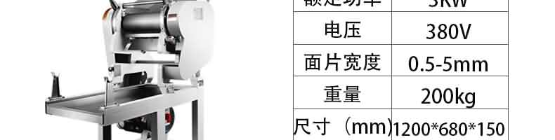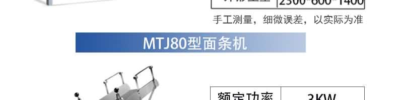 名稱MTJ-60A型面條機(卡把式) 電源 功率2.2kw 產(chǎn)量60kg/h 尺寸800×500×1150mm 重量120kg 規(guī)格 其他